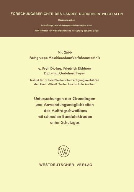 Untersuchungen der Grundlagen und Anwendungsmöglichkeiten des Auftragschweißens mit schmalen Bandelektroden unter Schutzgas (niemiecki)
