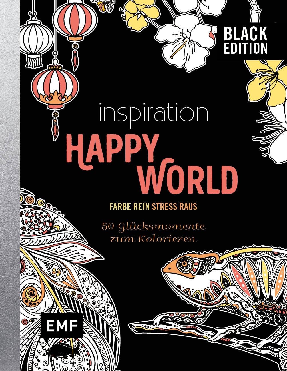 Black Edition: Inspiration Happy World - 50 Glücksmomente zum Kolorieren (niemiecki)