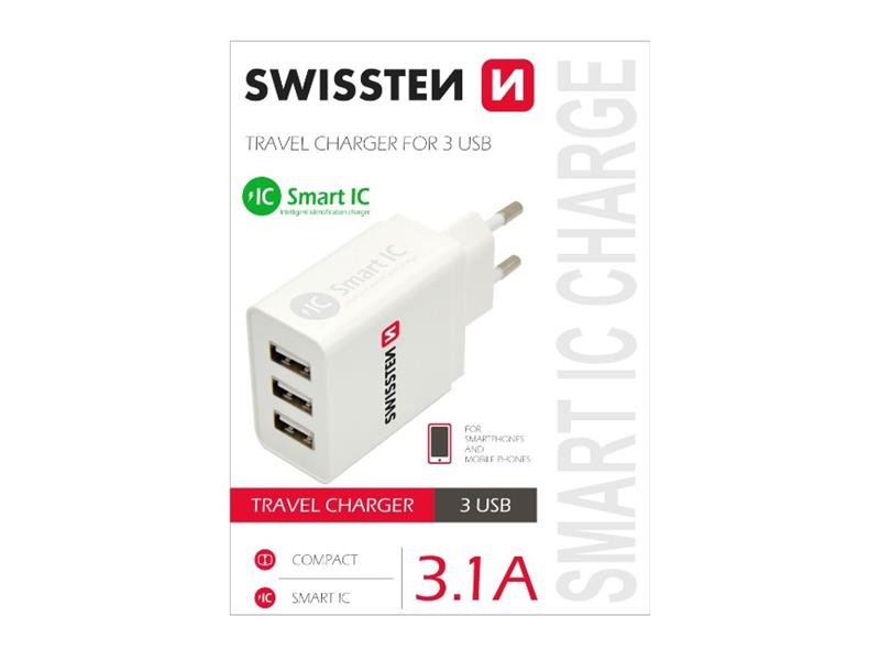 Adaptér síťový SWISSTEN SMART IC 3x USB 3,1A POWER BÍLÝ