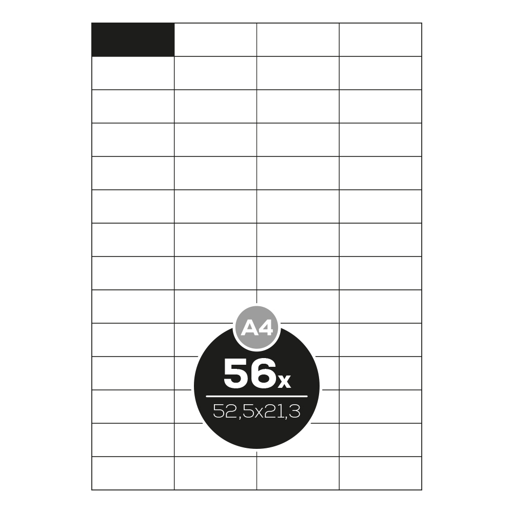 Etikety PRINT A4 / 100 ks, 52,5x21,3 - 56 etiket, bílé. Print etikety s bezpečnostním okrajem, který zabraňuje vytečení lepidla. przeczytaj całość