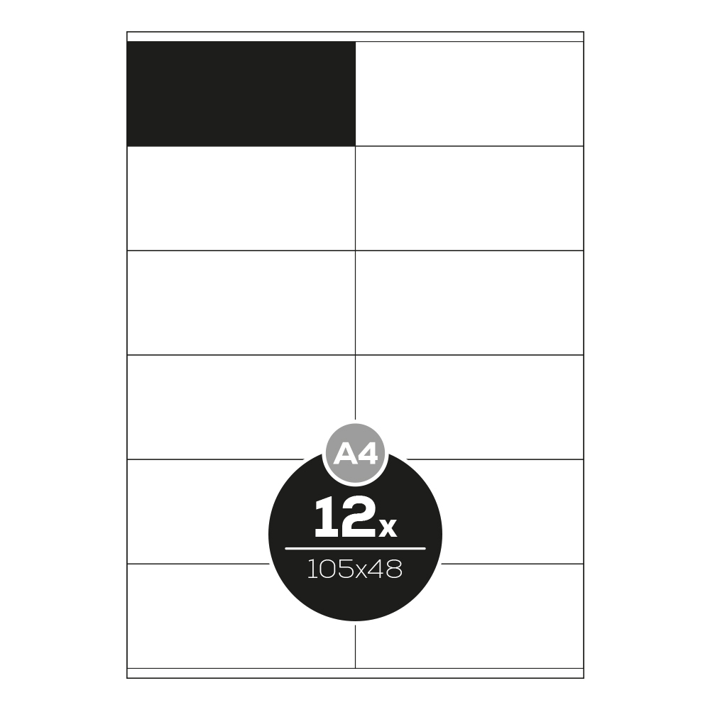 Etikety PRINT A4 / 100 ks, 105x48 - 12 etiket, bílé