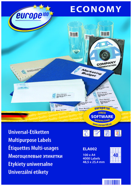Etykiety 48.5 x 25.4 mm 40 x 100 ark Europe100 by Economy, Avery