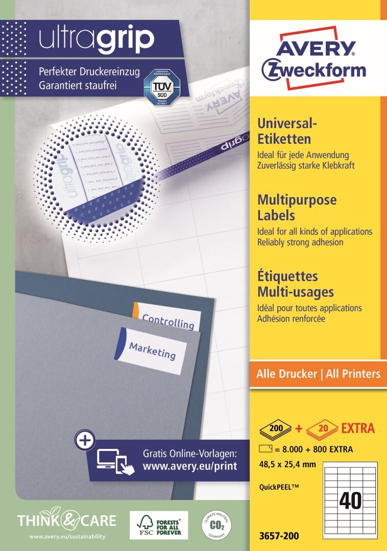Avery Zweckform 3657-200 Samolepicí etikety 48,5x25,4 mm, bílé