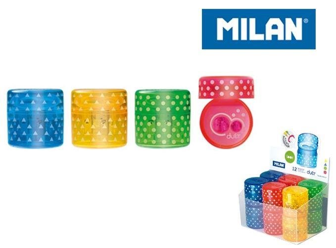 Temperówka DUET z satynową, jedwabistą powłoką w dotyku jak gumka. Temperówka  podwójna zarówno na grube, jak i cienkie ołówki i kredki z pojemnikiem na ścinki. Bezpieczne ostrze ze stali węglowej. W 4 kolorach (mix). przeczytaj całość