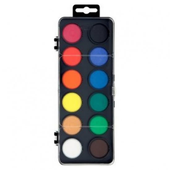 - Zestaw zawiera 12 farbek w solidnym pudełku