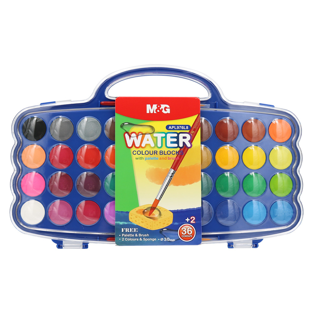 Farby wodne w praktycznym pudełku z przezroczystą pokrywą - z paletką.