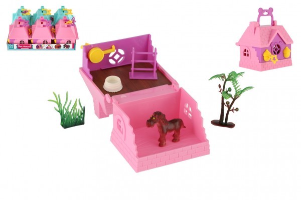 Domeček se zvířátkem/Pokladnička s klíčkem s doplňky 2v1 plast 9,5x10x8cm 2 barvy 6ks v boxu