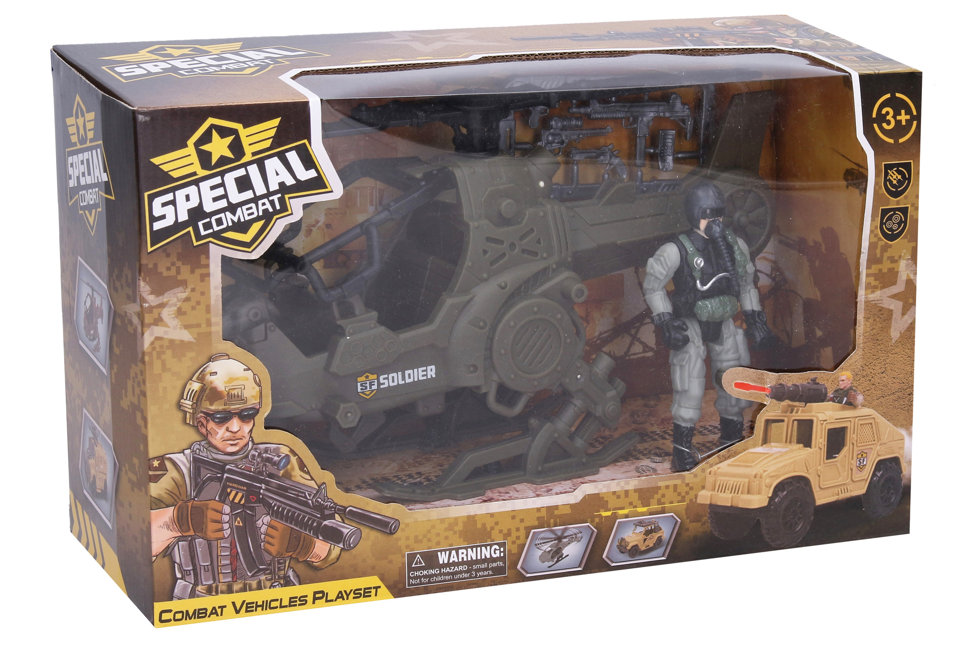 Wojskowy śmigłowiec z pilotem. Długość śmigłowca 23cm, figurka pilota 9,5cm. przeczytaj całość