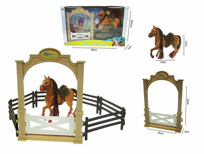 Zagroda dla konia do samodzielnego złożenia, wykonana z plastiku. Zestaw z koniem który posiada długą grzywę i ogon, oraz wiele elementów niezbędnych na farma.Wymiary opakowania: 40x29x7cm.Wiek: 6+. przeczytaj całość