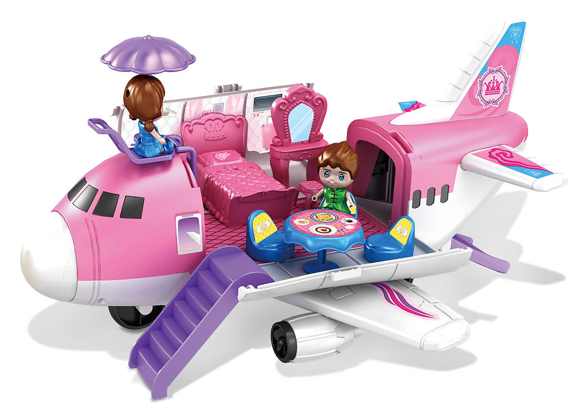 Letadlo s figurkami. Rozměry složeného letadla 34x28.5x17,5 cm. Obsahuje díly a nálepky k sestavení letadla, figurky, nábytek do letadla, obrázkový návod k sestavení na obale. Bok letadla je otevírací. przeczytaj całość
