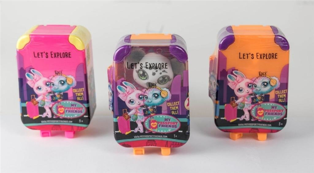 Wszystkie figurki są pokryte materiałem, mają zdejmowane elementy ( ubiór, akcesoria) , zestaw zawiera oprócz figurki : walizkę z kółkami, stempel oraz paszport)