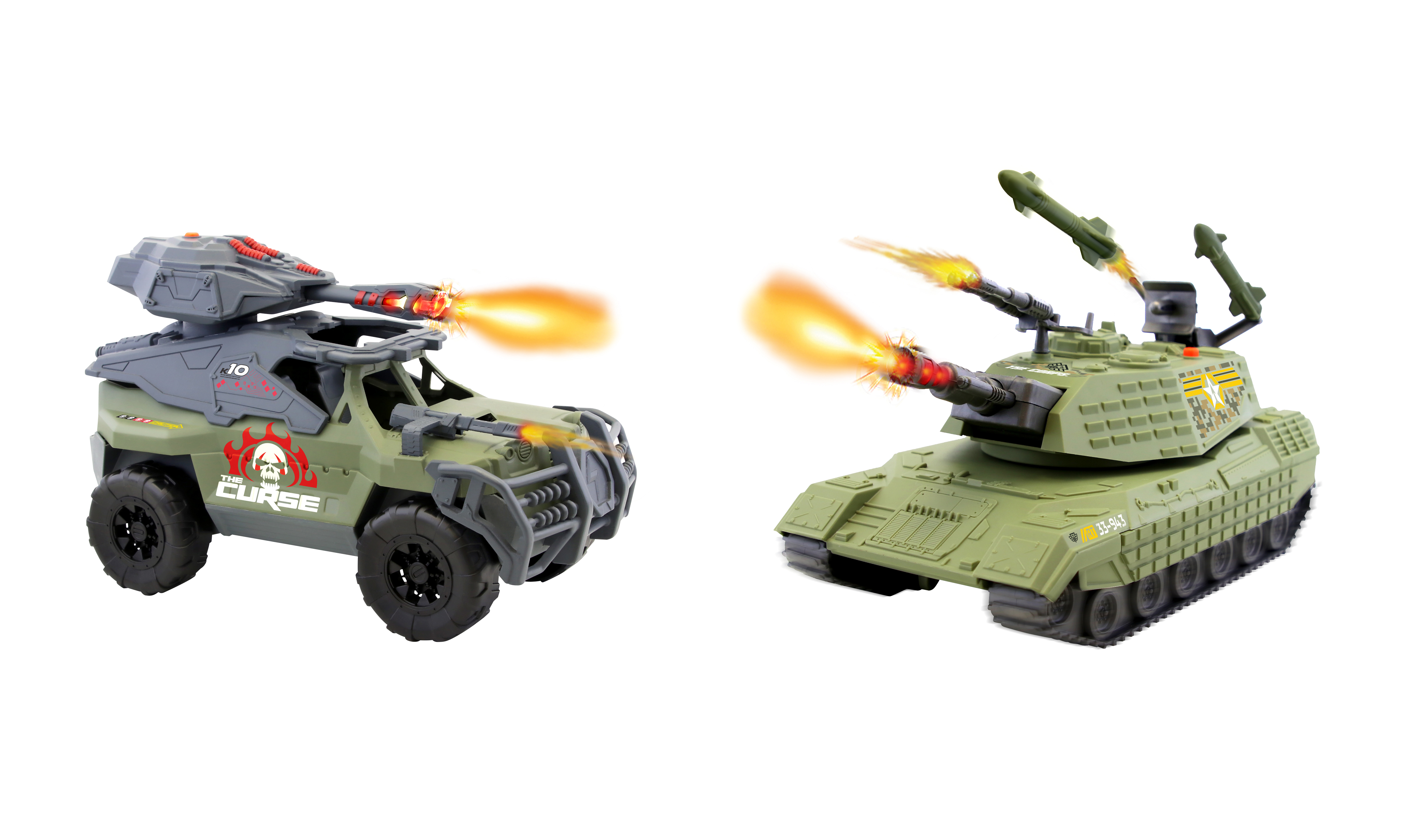 The Corps vojenská technika. Velikost tanku 27 cm. Světelné a zvukové efekty. 3xAA baterie pro tank, 2xAA baterie pro útočné vozidlo jsou součástí. 2 varianty - tank, útočné vozidlo. przeczytaj całość