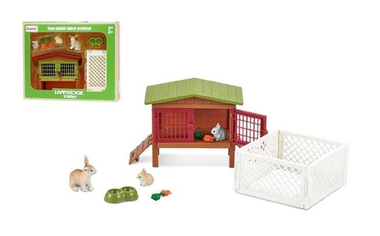 Zabawka zagroda dla królików dla dzieci. W zestawie zagroda, wybieg dla królików, miseczki, królik, 2 króliczki i marchewki. Figurki są ręcznie malowane! Zabawka dla dzieci od 3 lat. Produkt zapakowany w kartonowe opakowanie z przezroczystym okienkiem. podane wymiary są wymiarami opakowania. przeczytaj całość