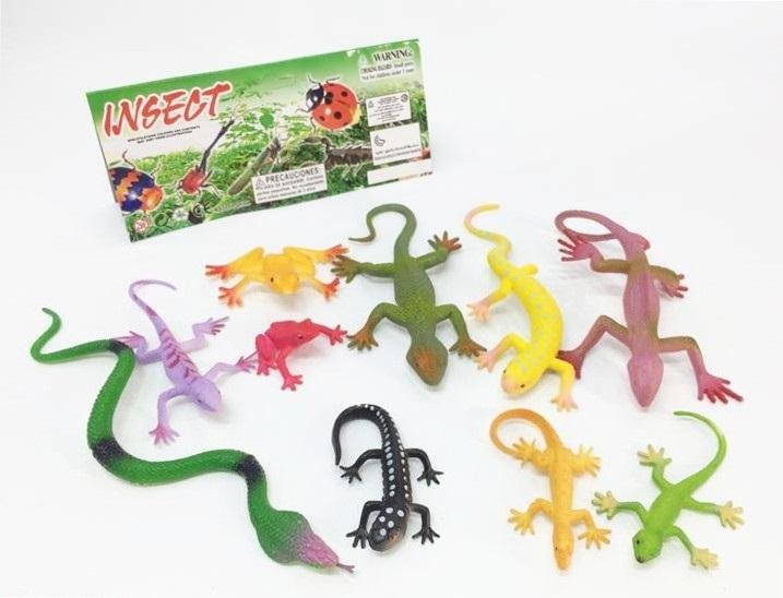 Zestaw 10 kolorowych płazów (żaby) i gadów (jaszczurki). Produkt zapakowany w przezroczysty worek. Produkt przeznaczony dla dzieci od 3 lat. Podane wymiary są wymiarami opakowania. przeczytaj całość