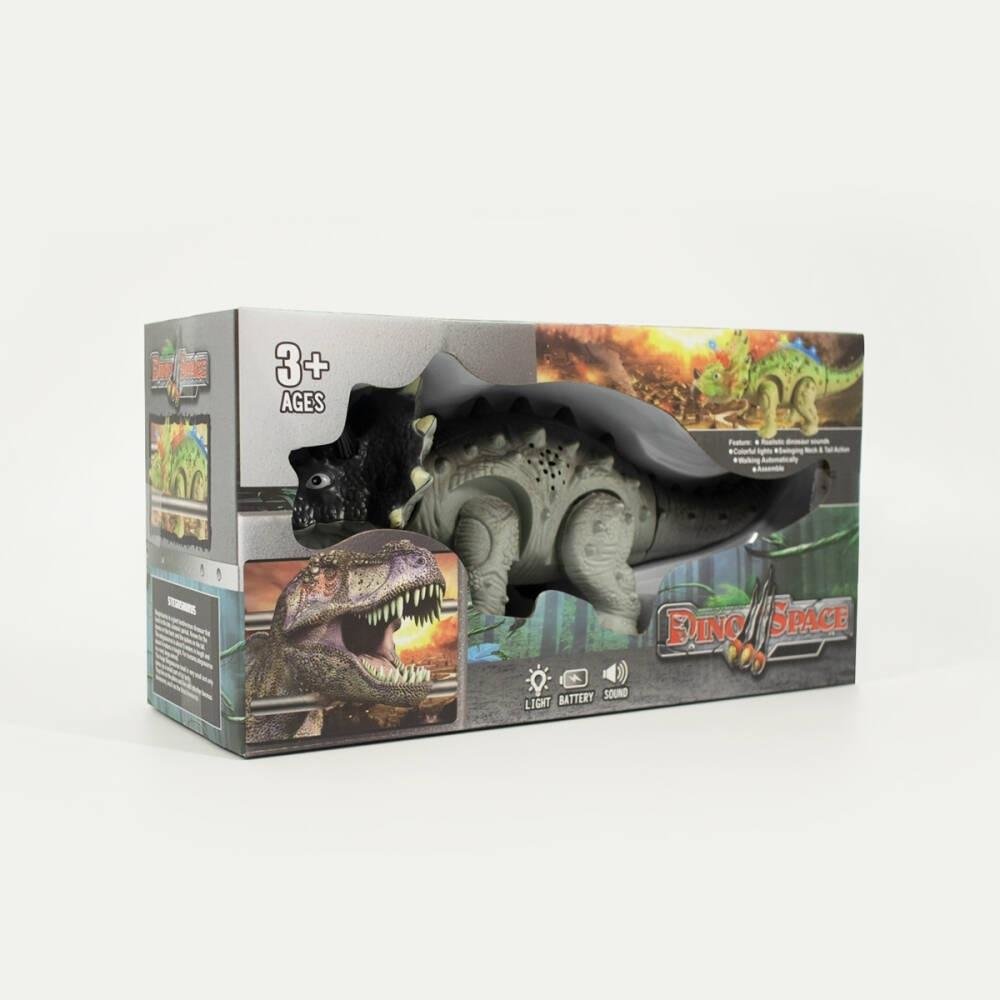 Dostępny jest w dwóch kolorach (beżowo-zielonym i szarym). Posiada funkcję światła oraz dźwięku. Potrafi sam chodzić. Wymagane jest użycie baterii 3 x 1.5V AAA. Dinozaur przeznaczony jest dla dzieci od 3 roku życia. przeczytaj całość
