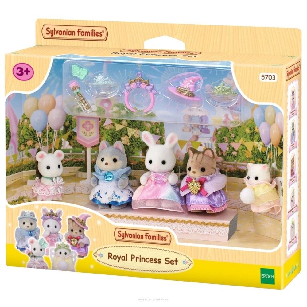 Czy może być coś wspanialszego niż być księżniczką? W Sylvanian Village maluchy uwielbiają przebierać się za księżniczki. Ubierają wtedy cudowne sukienki, zakładają broszki i korony. Zestaw figurek Księżniczki Sylvanian Families zawiera figurkę małego śnieżnego zajączka, małego husky, dziecka pręgowanych kotków, małej piankowej myszki i perskiego kotka, każde z maluchów w bajecznej sukience. Ubranka można zakładać i zdejmować. Aksamitnie miękkie figurki mają ok. 3-5 cm, produkt jest przeznaczony dla dzieci od trzeciego roku życia.