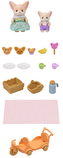 Rodzeństwo lisków pustynnych Sylvanian Families zaplanowało wspaniały piknik. Rowerem trzykołowym jadą nad lśniące jezioro i urządzają sobie piknik. Na dużym rowerze trzykołowym mogą jeździć dwie figurki. Na kocu piknikowym Jasmine opowiada swojemu młodszemu bratu ekscytujące historie, oboje zajadają pyszne wypieki i popijają herbatę. Zestaw Liski pustynne na pikniku Sylvanian Families zawiera duży rower trzykołowy, liska pustynnego dziewczynkę oraz malucha, koc piknikowy, kosz piknikowy, talerze, filiżanki i wiele innych akcesoriów. Głowa, ramiona i nogi dużej figurki są ruchome. Ubranka można zakładać i zdejmować. Aksamitnie miękkie figurki mają od 4 do 7 cm i są przeznaczone dla dzieci od trzeciego roku życia.