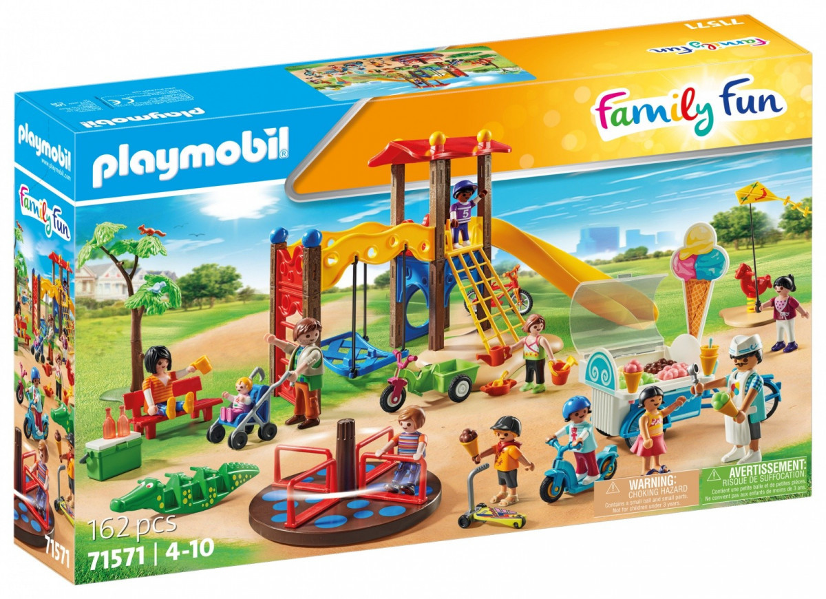 Zestaw PLAYMOBIL Family Fun Set 71571 zawiera nie tylko duży plac zabaw z mnóstwem urządzeń do zabawy, ale także 7 figurek dzieci, 3 figurki dorosłych i figurkę niemowlaka. Całość zapewni mnóstwo zabawy! przeczytaj całość