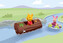 - Rozwój umiejętności motorycznych poprzez przesuwanie i wkładanie figurki, a także przesuwanie łódki z pnia drzewa i kółka do pływania.