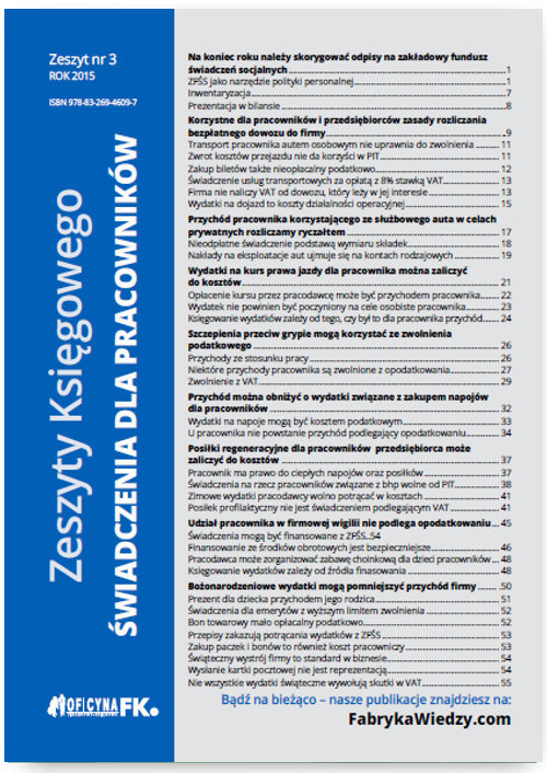 Zeszyty Księgowego Nr 3 Świadczenia dla pracowników
