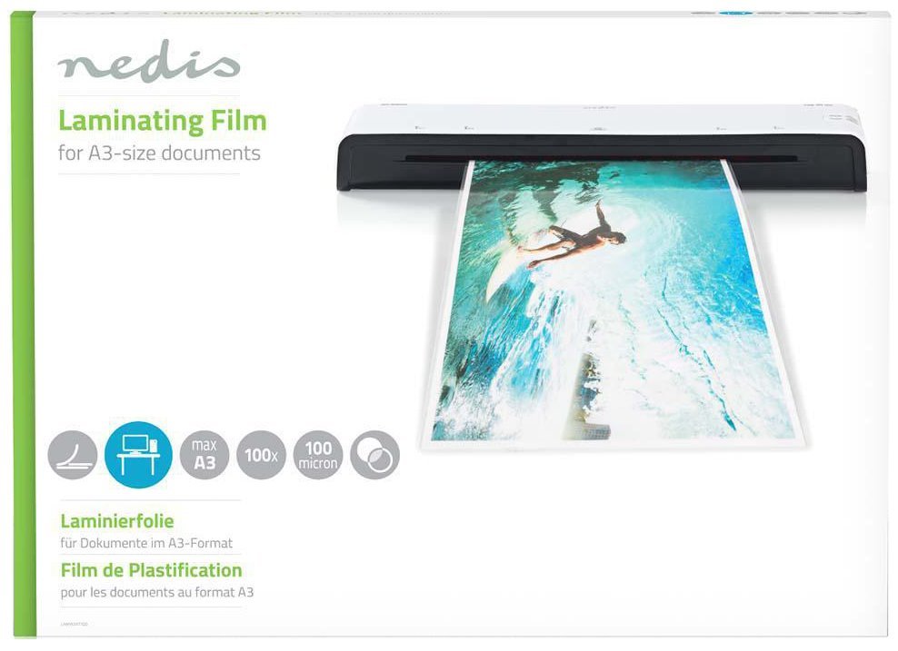 NEDIS laminovací fólie/ formát A3/ 100 mic/ rozměr 426 x 303 mm/ transparentní/ 100 pack
