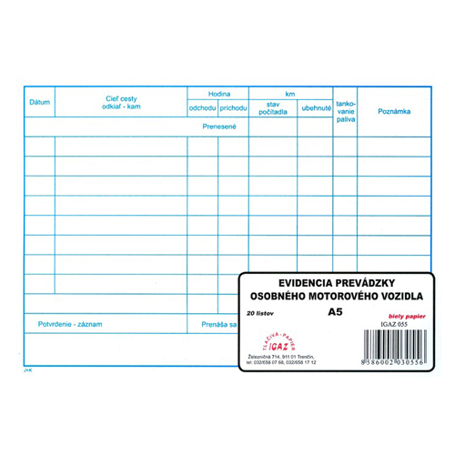 Evidencia prevádzky osob. motor. vozidla (55) przeczytaj całość