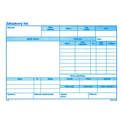Zakázkový list A5 - samoprepis - 100 listů