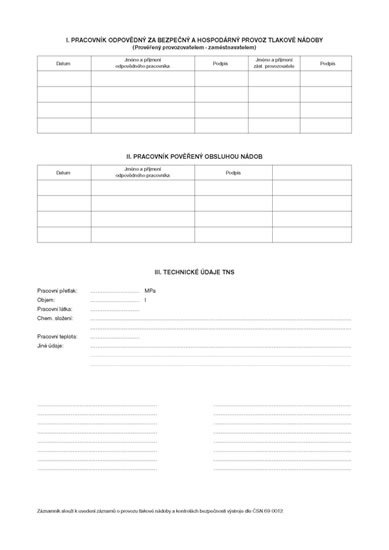 Záznamník o provozu tlakové nádoby, A4, 16 listů
