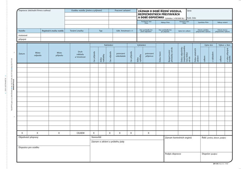 Záznam o době řízení vozidla a bezpečnostních přestávkách, karbon, A4, 100 listů