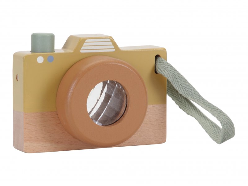 Drewniany aparat fotograficzny z paskiem na nadgarstek Twoje dziecko może łatwo nosić ze sobą wszędzie - na spacer, do zoo i do babci. Widok świata przez obiektyw w formie kalejdoskopu będzie zawsze kolorowy i zabawny! Przycisk spustu pozwala małemu fotografowi poczuć prawdziwe fotografowanie. Rozmiary: 4,5 x 10 x 7,5 cm Nadaje się dla dzieci od 2 lat.