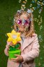 Maszyna do zabawy bańkami mydlanymi w kształcie kwiatka to idealna propozycja dla najmłodszych miłośników baniek. Zabawka zachęca małe dzieci do aktywności fizycznej, zapraszając do zabawy w łapanie uciekających w powietrzu baniek. Maszyna w krótkim czasie tworzy chmurę malutkich baniek, zapewniając wspaniałą zabawę dzieciom i doskonałe urozmaicenie czasu, spędzanego na świeżym powietrzu. Maszyna posiada dodatkowy efekt w postaci lampki LED, dzięki której bańki wyglądają niezwykle atrakcyjnie również po zmroku.