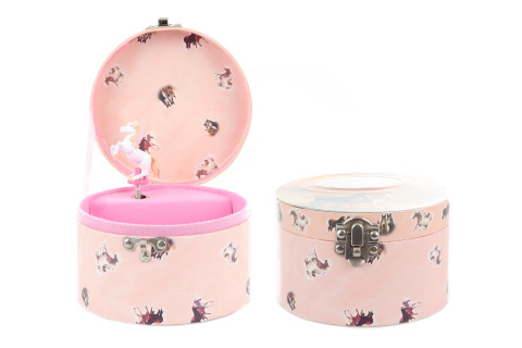 Hrací skříňka šperkovnice s motivem koní. Uvnitř špekovnice je zrcátko a koník, který se po natažení klíčku točí a hraje. Velikost cca 13 x 13 x 8 cm. Baleno v igelitovém sáčku. Věk 3+ przeczytaj całość