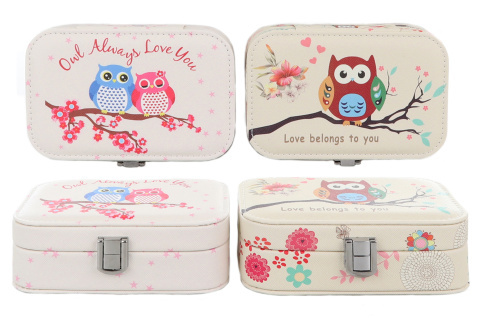 Šperkovnice s motivem sovičky. Uvnitř špekovnice je zrcátko a vnitřní prostor je rozdělen do tří praktických přihrádek. Velikost cca 15 x 10 x 5 cm. Baleno v kartonové krabičce o rozměru 16 x 11,5 x 6 cm Věk 3+ przeczytaj całość