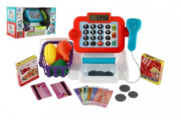 Pokladna digitální plast 16x17cm s doplňky na baterie se světlem, zvukem 2 barvy v krabici 33x20x15