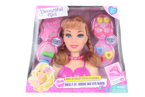 - Zawartość opakowania: głowa, grzebień, gumki, wsuwki, kolczyki