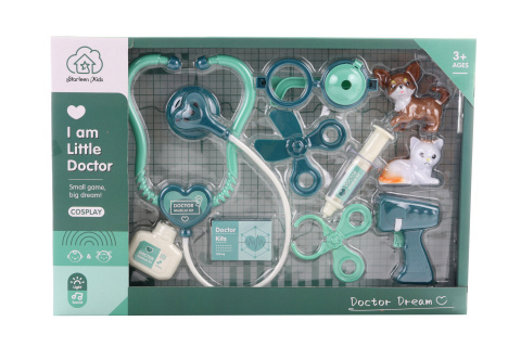 Sada veterinář s pejskem a kočičkou. Materiál plast. Obsahuje teploměr na baterie, které jsou součástí balení. Rozměry balení 41,5x28x5 cm. Věk 3+ przeczytaj całość