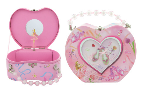 Pozytywka szkatułka na biżuterię. Wewnątrz szkatułki znajduje się lusterko i baletnica, która po nakręceniu kluczyka tańczy i gra. Rozmiar około 19,5 x 16 x 8 cm. Zapakowane w woreczek foliowy. Wiek 3+ przeczytaj całość