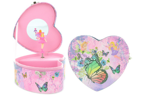 Hrací skříňka šperkovnice s vílou. Uvnitř špekovnice je zrcátko a víla, která po natažení klíčku tančí a hraje. Velikost cca 16,5 x 8 x 15,5 cm. Baleno v igelitovém sáčku. Věk 3+ przeczytaj całość