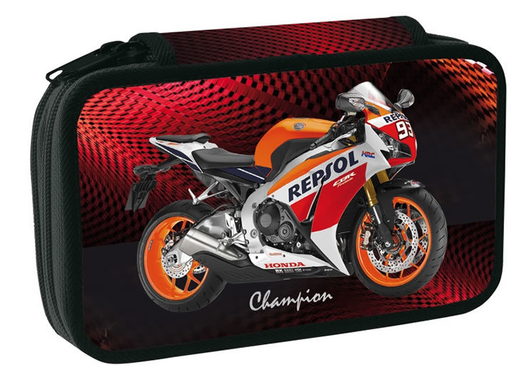 Školní penál dvoupatrový, prázdný. przeczytaj całość