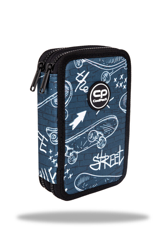 Wyposażony piórnik szkolny na 2 suwaki CoolPack Jumper 2. Zawiera: trójkątne kredki Colorino 12 szt., kolorowe flamastry Colorino 18 szt., trójkątny ołówek HB Colorino 1 szt., długopis kuleczkowy Patio Base 1 szt., linijka 15 cm, gumka Colorino, temperówka
