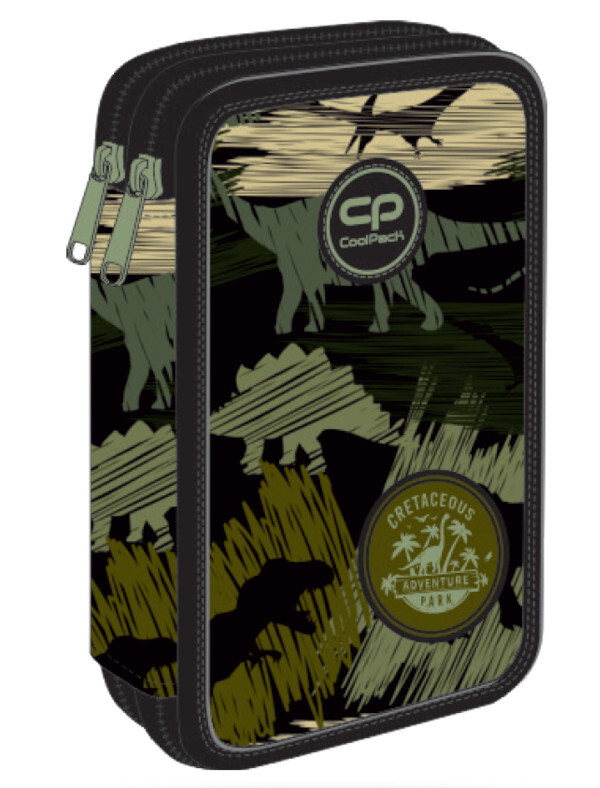 Wyposażony piórnik szkolny na 2 zamki CoolPack Jumper 2. Zawiera:• kredki trójkątne Colorino 12 szt.• kolorowe flamastry Colorino 18 szt.• ołówek trójkątny HB Colorino 1 szt.• długopis kulkowy Patio Base 1 szt.• linijka 15 cm• gumka Colorino• temperówka