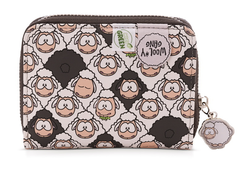 Portfel z kolekcji Wooly Gang od NICI z dekoracyjnym nadrukiem przedstawiającym stado białych i czarnych owieczek. Portfel jest zamykany za pomocą praktycznego zamka błyskawicznego, do którego została doczepiona mała, metalowa zawieszka w kształcie białej owieczki. Portfel został wyposażony w...