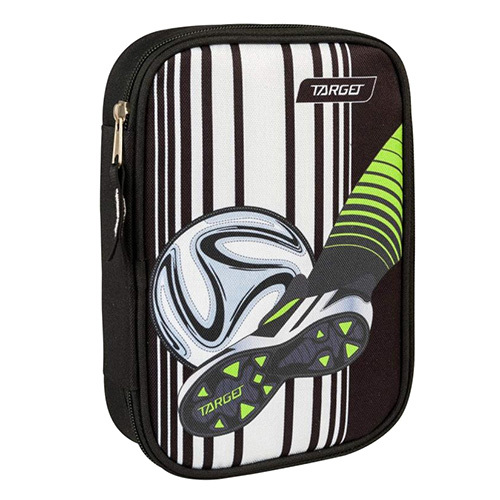 Školní penál s náplní Target Fotbal, jednopatrový, černo-bílý