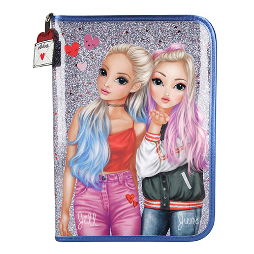 Penál s výbavou Top Model Jill a June, jednopatrový, mordý s glitry