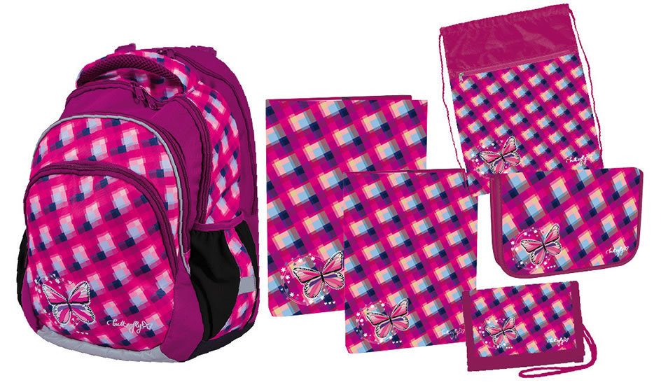 Školní set obsahuje: školní batoh Junior, Box A4, box A5, penál 1 - zip, sáček na cvičky, peněženka na krk. Popis jednotlivých položek setu: 1. Školní batoh - kvalitní, ergonomicky tvarovaný odlehčený školní batoh je vybaven reflexními prvky a anatomicky tvarovanými zády s pevnou konstrukcí....