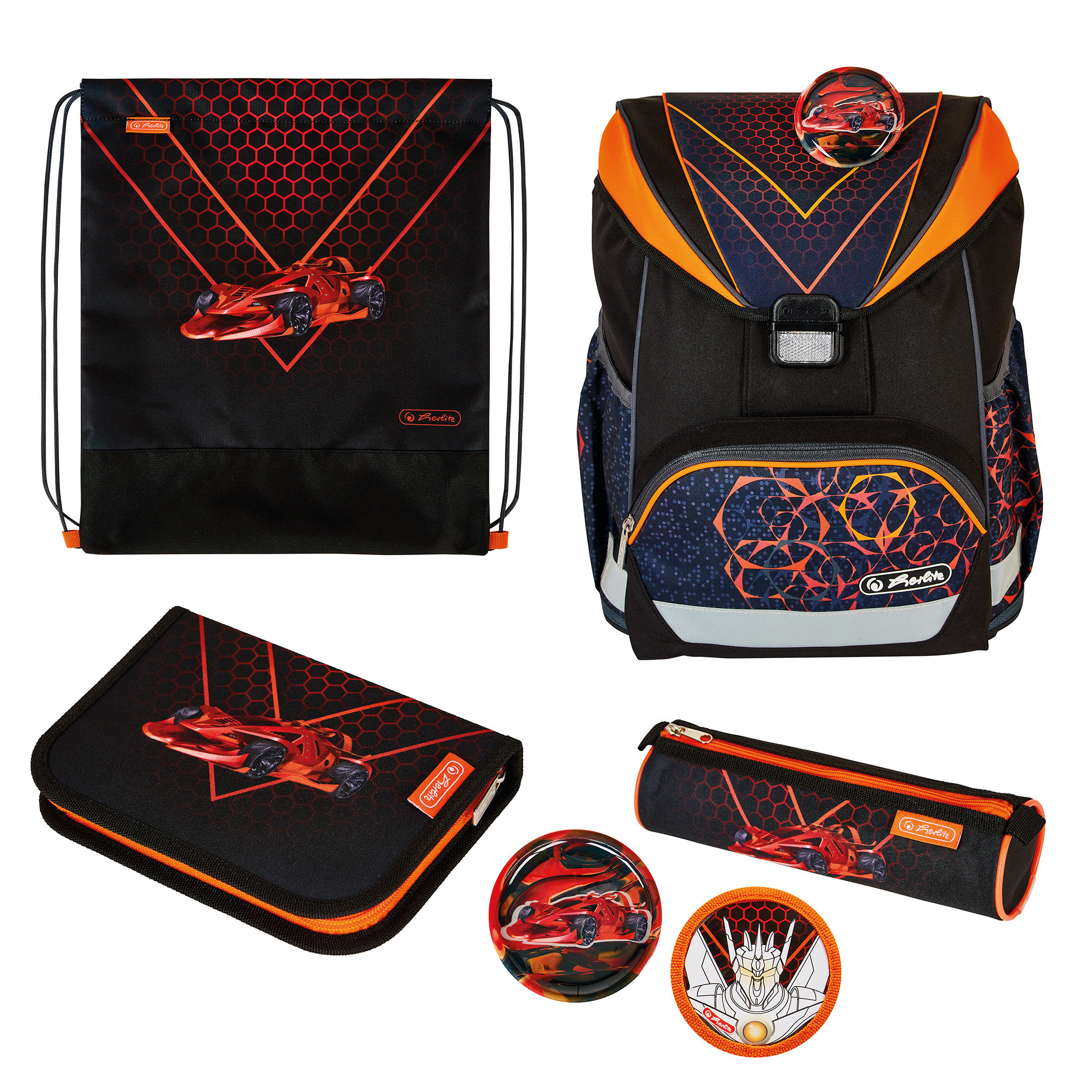model, 36x28x21 cm, anatomicznie profilowane wyściełane plecy, pas piersiowy, przednia kieszeń, dwie kieszenie boczne, pasy odblaskowe, 2 odpinane aplikacje na rzep, waga 650 g, wyposażenie: piórnik 16 elementów, worek na ćw., okrągłe etui przeczytaj całość