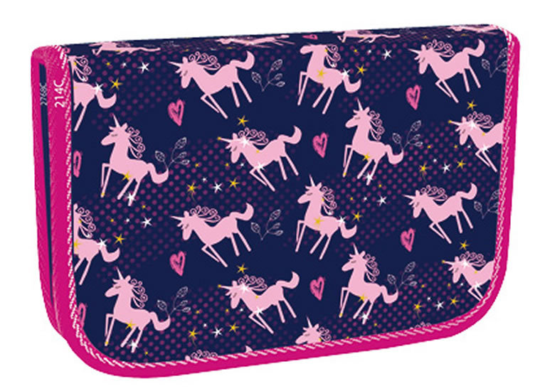Školní penál jednopatrový, prázdný s dvěma chlopněmi, o rozměru š.195 x v.35 x h.130mm przeczytaj całość