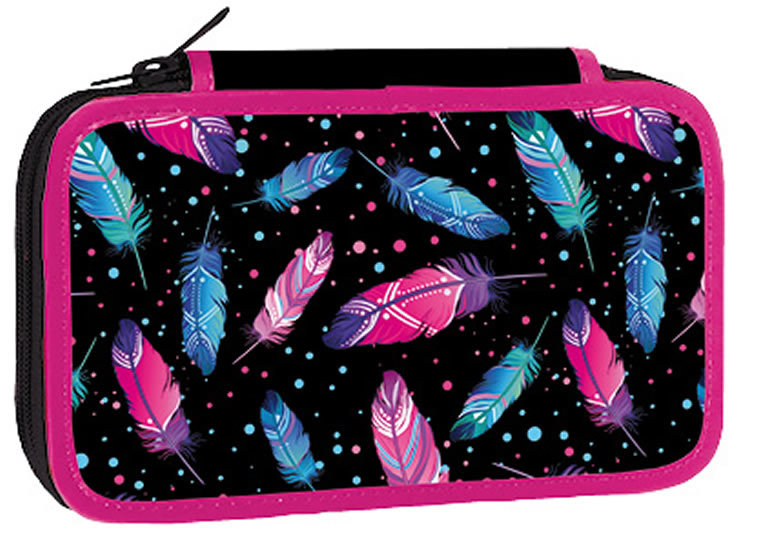 Školní penál třípatrový, prázdný, o rozměru 190 x 110 x 60 mm. przeczytaj całość