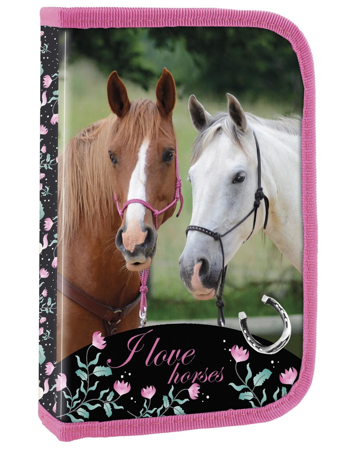 Penál má jednu přihrádku na zip a dvě vnitřní chlopně. Zip s ozdobným zakončením. Vnitřek penálu na tužky má četné záložky na příslušenství a místo pro rozvrh a násobilku. Rozměry: 20 x 13 x 4 cm.Materiál: polyester.Bez vnitřního vybavení.Výrobce: Derform. przeczytaj całość