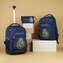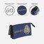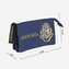 Tříprostorový modrý školní penál na tužky s motivem školy čar a kouzel Bradavice.